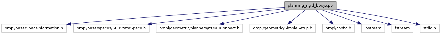 #include <ompl/base/SpaceInformation.h>#include <ompl/base/spaces/SE3StateSpace.h>#include <ompl/geometric/planners/rrt/RRTConnect.h>#include <ompl/geometric/SimpleSetup.h>#include <ompl/config.h>#include <iostream>#include <fstream>#include <stdio.h>