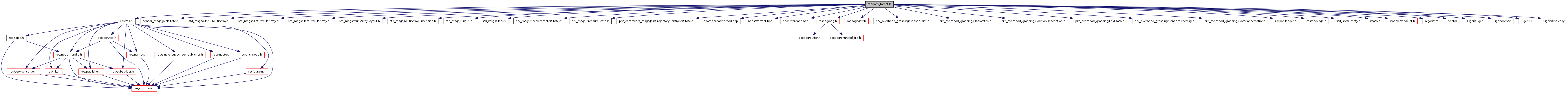 #include <ros/ros.h>#include "sensor_msgs/JointState.h"#include "std_msgs/UInt16MultiArray.h"#include "std_msgs/UInt32MultiArray.h"#include "std_msgs/Float32MultiArray.h"#include "std_msgs/MultiArrayLayout.h"#include "std_msgs/MultiArrayDimension.h"#include "std_msgs/UInt16.h"#include "std_msgs/Bool.h"#include "pr2_msgs/AccelerometerState.h"#include "pr2_msgs/PressureState.h"#include "pr2_controllers_msgs/JointTrajectoryControllerState.h"#include "boost/thread/thread.hpp"#include "boost/format.hpp"#include "boost/foreach.hpp"#include "rosbag/bag.h"#include "rosbag/view.h"#include "pr2_overhead_grasping/SensorPoint.h"#include "pr2_overhead_grasping/ClassVotes.h"#include "pr2_overhead_grasping/CollisionDescription.h"#include "pr2_overhead_grasping/FoldData.h"#include "pr2_overhead_grasping/RandomTreeMsg.h"#include "pr2_overhead_grasping/CovarianceMatrix.h"#include "roslib/Header.h"#include <ros/package.h>#include <std_srvs/Empty.h>#include <math.h>#include <nodelet/nodelet.h>#include <algorithm>#include <vector>#include <Eigen/Eigen>#include <Eigen/Dense>#include <Eigen/QR>#include <Eigen/Cholesky>