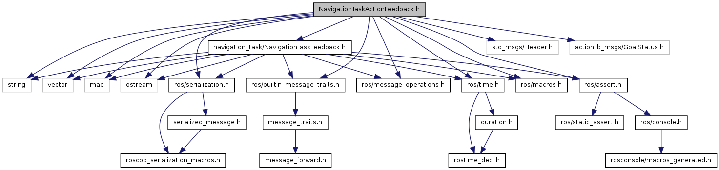 #include <string>#include <vector>#include <map>#include <ostream>#include "ros/serialization.h"#include "ros/builtin_message_traits.h"#include "ros/message_operations.h"#include "ros/time.h"#include "ros/macros.h"#include "ros/assert.h"#include "std_msgs/Header.h"#include "actionlib_msgs/GoalStatus.h"#include "navigation_task/NavigationTaskFeedback.h"