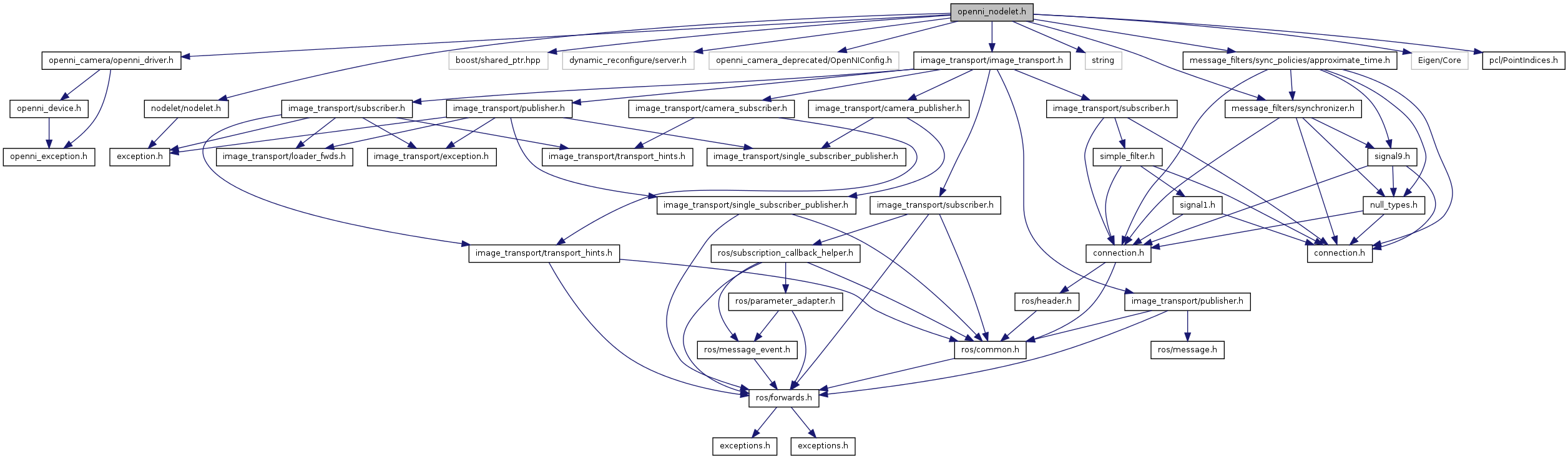 #include <nodelet/nodelet.h>#include "openni_camera/openni_driver.h"#include <boost/shared_ptr.hpp>#include <dynamic_reconfigure/server.h>#include <openni_camera_deprecated/OpenNIConfig.h>#include <image_transport/image_transport.h>#include <string>#include <message_filters/synchronizer.h>#include <message_filters/sync_policies/approximate_time.h>#include <Eigen/Core>#include <pcl/PointIndices.h>