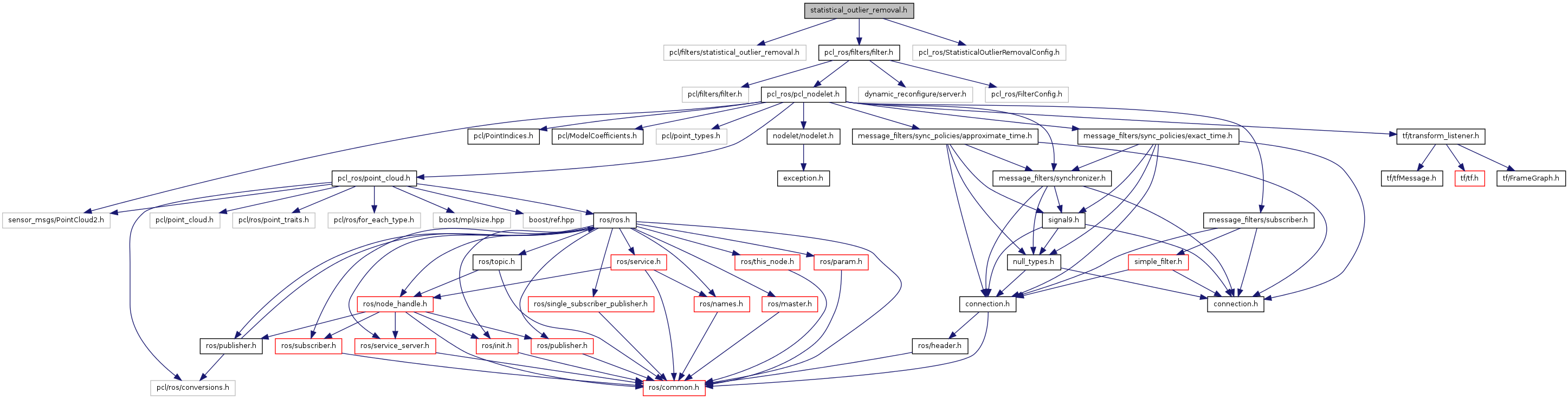 #include <pcl/filters/statistical_outlier_removal.h>#include "pcl_ros/filters/filter.h"#include "pcl_ros/StatisticalOutlierRemovalConfig.h"