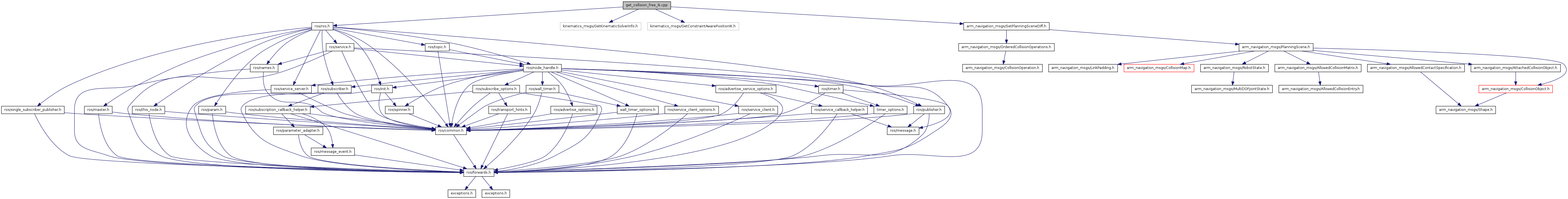 #include <ros/ros.h>#include <kinematics_msgs/GetKinematicSolverInfo.h>#include <kinematics_msgs/GetConstraintAwarePositionIK.h>#include <arm_navigation_msgs/SetPlanningSceneDiff.h>