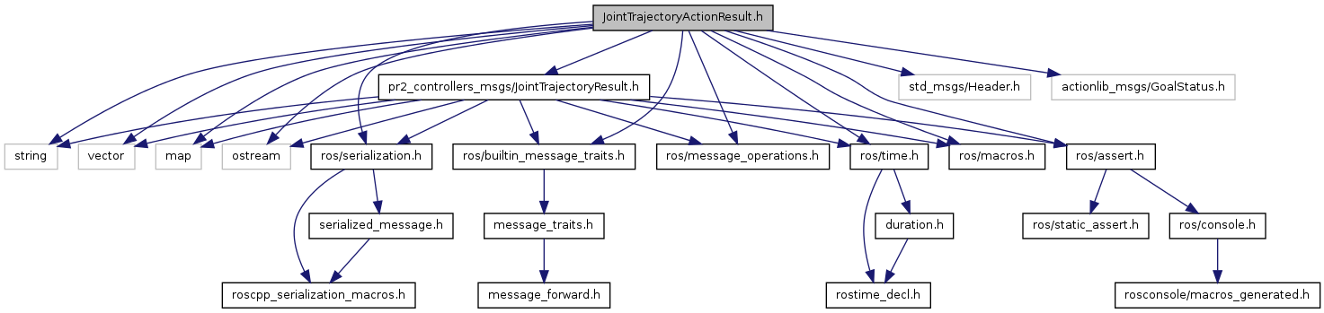 #include <string>#include <vector>#include <map>#include <ostream>#include "ros/serialization.h"#include "ros/builtin_message_traits.h"#include "ros/message_operations.h"#include "ros/time.h"#include "ros/macros.h"#include "ros/assert.h"#include "std_msgs/Header.h"#include "actionlib_msgs/GoalStatus.h"#include "pr2_controllers_msgs/JointTrajectoryResult.h"