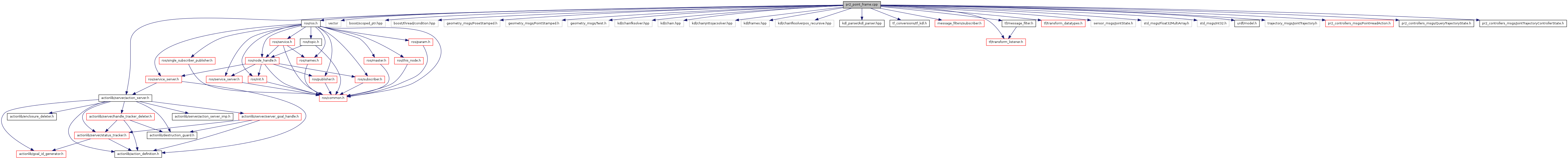 #include <ros/ros.h>#include <vector>#include <boost/scoped_ptr.hpp>#include <boost/thread/condition.hpp>#include <actionlib/server/action_server.h>#include <geometry_msgs/PoseStamped.h>#include <geometry_msgs/PointStamped.h>#include <geometry_msgs/Twist.h>#include <kdl/chainfksolver.hpp>#include <kdl/chain.hpp>#include <kdl/chainjnttojacsolver.hpp>#include <kdl/frames.hpp>#include "kdl/chainfksolverpos_recursive.hpp"#include "kdl_parser/kdl_parser.hpp"#include "tf_conversions/tf_kdl.h"#include <message_filters/subscriber.h>#include <tf/message_filter.h>#include <tf/transform_datatypes.h>#include <tf/transform_listener.h>#include <sensor_msgs/JointState.h>#include <std_msgs/Float32MultiArray.h>#include <std_msgs/Int32.h>#include <urdf/model.h>#include <trajectory_msgs/JointTrajectory.h>#include <pr2_controllers_msgs/PointHeadAction.h>#include <pr2_controllers_msgs/QueryTrajectoryState.h>#include <pr2_controllers_msgs/JointTrajectoryControllerState.h>