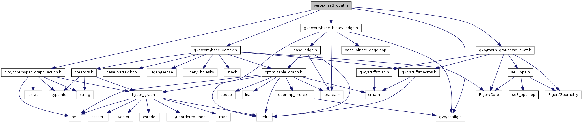#include "g2o/config.h"#include "g2o/core/base_vertex.h"#include "g2o/core/base_binary_edge.h"#include "g2o/core/hyper_graph_action.h"#include "g2o/math_groups/se3quat.h"