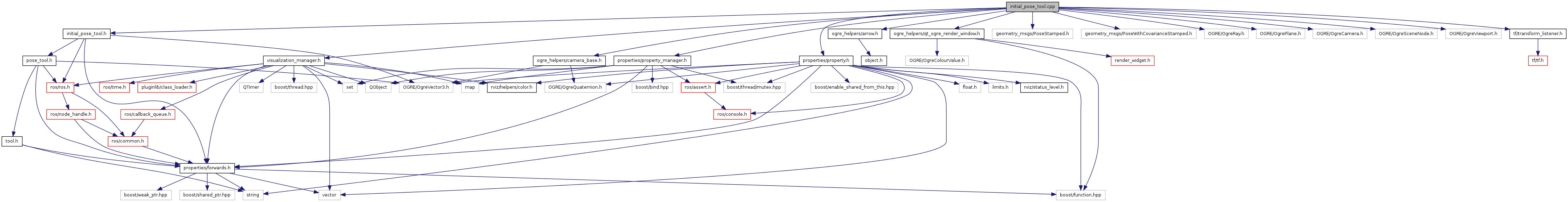 #include "initial_pose_tool.h"#include "visualization_manager.h"#include "properties/property.h"#include "properties/property_manager.h"#include "ogre_helpers/camera_base.h"#include "ogre_helpers/arrow.h"#include "ogre_helpers/qt_ogre_render_window.h"#include <geometry_msgs/PoseStamped.h>#include <geometry_msgs/PoseWithCovarianceStamped.h>#include <OGRE/OgreRay.h>#include <OGRE/OgrePlane.h>#include <OGRE/OgreCamera.h>#include <OGRE/OgreSceneNode.h>#include <OGRE/OgreViewport.h>#include <tf/transform_listener.h>