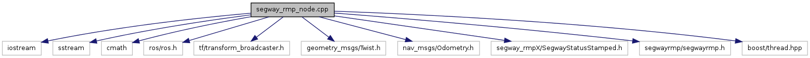#include <iostream>#include <sstream>#include <cmath>#include "ros/ros.h"#include <tf/transform_broadcaster.h>#include "geometry_msgs/Twist.h"#include "nav_msgs/Odometry.h"#include "segway_rmpX/SegwayStatusStamped.h"#include "segwayrmp/segwayrmp.h"#include <boost/thread.hpp>