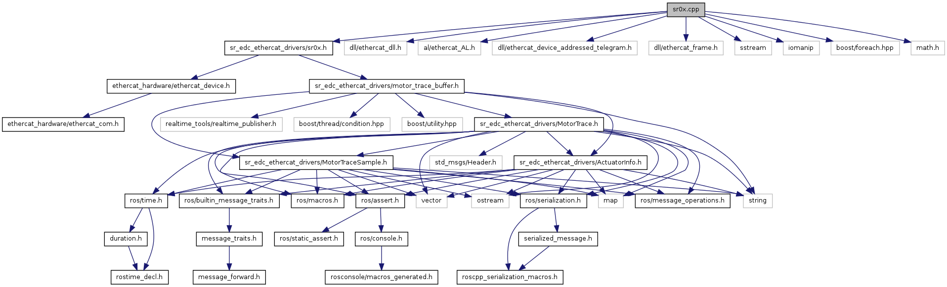 #include <sr_edc_ethercat_drivers/sr0x.h>#include <dll/ethercat_dll.h>#include <al/ethercat_AL.h>#include <dll/ethercat_device_addressed_telegram.h>#include <dll/ethercat_frame.h>#include <sstream>#include <iomanip>#include <boost/foreach.hpp>#include <math.h>