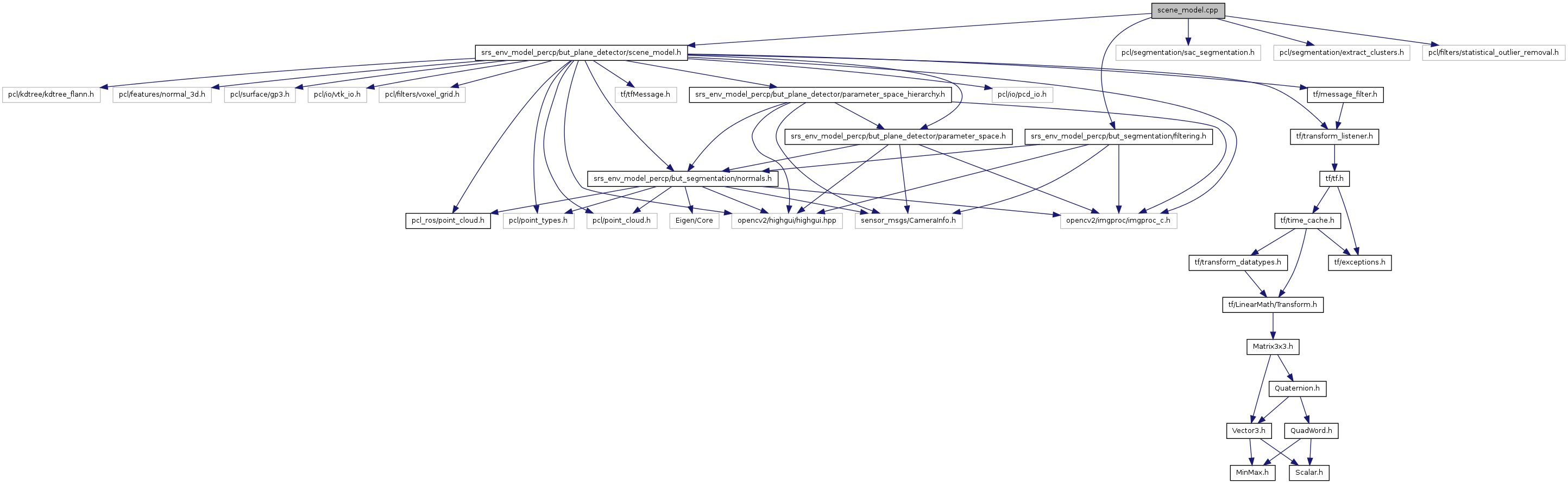 #include <srs_env_model_percp/but_plane_detector/scene_model.h>#include <srs_env_model_percp/but_segmentation/filtering.h>#include <pcl/segmentation/sac_segmentation.h>#include <pcl/segmentation/extract_clusters.h>#include <pcl/filters/statistical_outlier_removal.h>