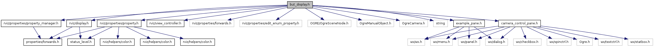 #include <rviz/display.h>#include <rviz/view_controller.h>#include "rviz/properties/forwards.h"#include "rviz/properties/property.h"#include "rviz/properties/edit_enum_property.h"#include "rviz/properties/property_manager.h"#include <OGRE/OgreSceneNode.h>#include <OgreManualObject.h>#include <OgreCamera.h>#include <string>#include "example_pane.h"#include "camera_control_pane.h"