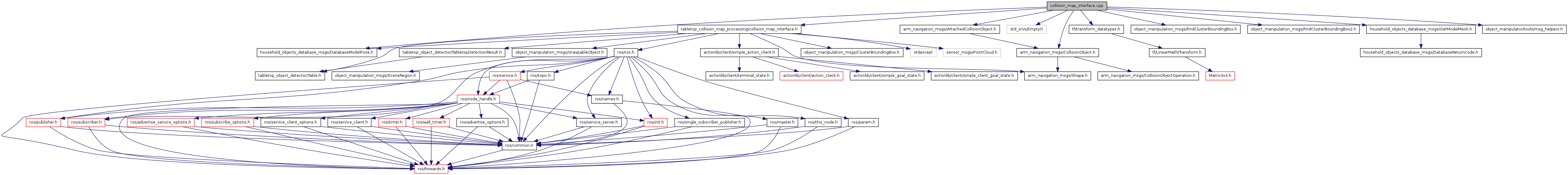 #include "tabletop_collision_map_processing/collision_map_interface.h"#include <tf/transform_datatypes.h>#include <std_srvs/Empty.h>#include <arm_navigation_msgs/CollisionObject.h>#include <arm_navigation_msgs/AttachedCollisionObject.h>#include <object_manipulation_msgs/FindClusterBoundingBox.h>#include <object_manipulation_msgs/FindClusterBoundingBox2.h>#include <household_objects_database_msgs/DatabaseModelPose.h>#include <household_objects_database_msgs/GetModelMesh.h>#include <object_manipulator/tools/msg_helpers.h>