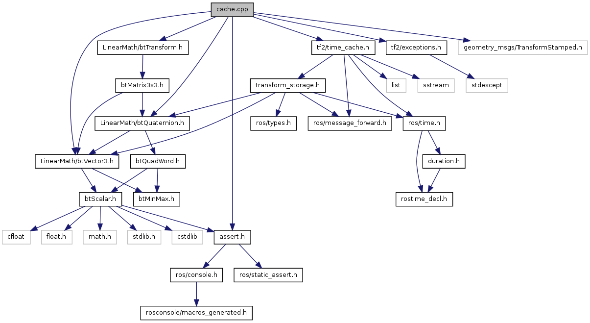 #include "tf2/time_cache.h"#include "tf2/exceptions.h"#include <LinearMath/btVector3.h>#include <LinearMath/btQuaternion.h>#include "LinearMath/btTransform.h"#include <geometry_msgs/TransformStamped.h>#include <ros/assert.h>