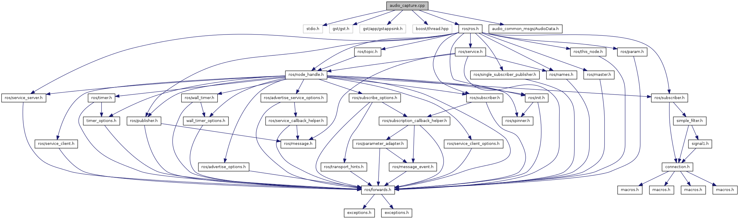 #include <stdio.h>#include <gst/gst.h>#include <gst/app/gstappsink.h>#include <boost/thread.hpp>#include <ros/ros.h>#include "audio_common_msgs/AudioData.h"