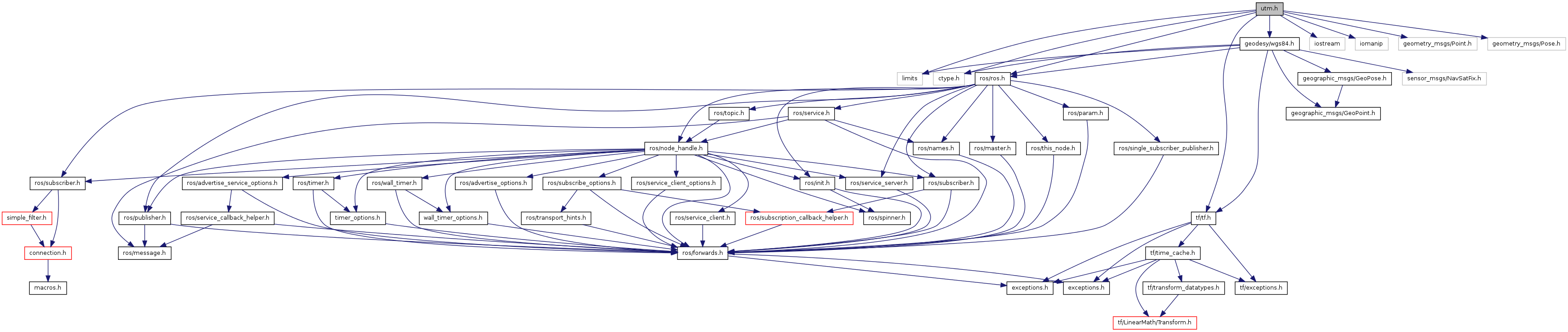 Include dependency graph for utm.h: