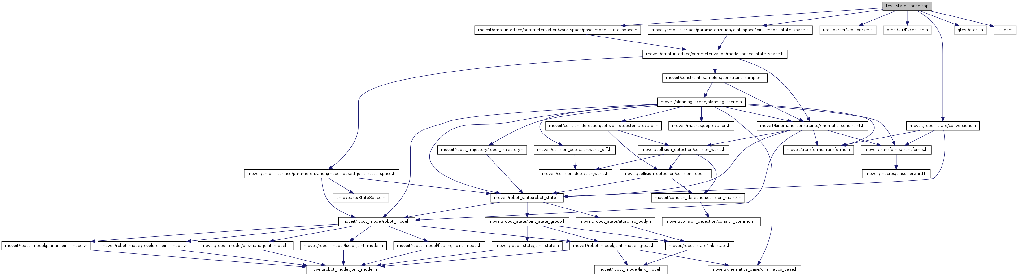 #include <moveit/ompl_interface/parameterization/joint_space/joint_model_state_space.h>#include <moveit/ompl_interface/parameterization/work_space/pose_model_state_space.h>#include <urdf_parser/urdf_parser.h>#include <ompl/util/Exception.h>#include <moveit/robot_state/conversions.h>#include <gtest/gtest.h>#include <fstream>