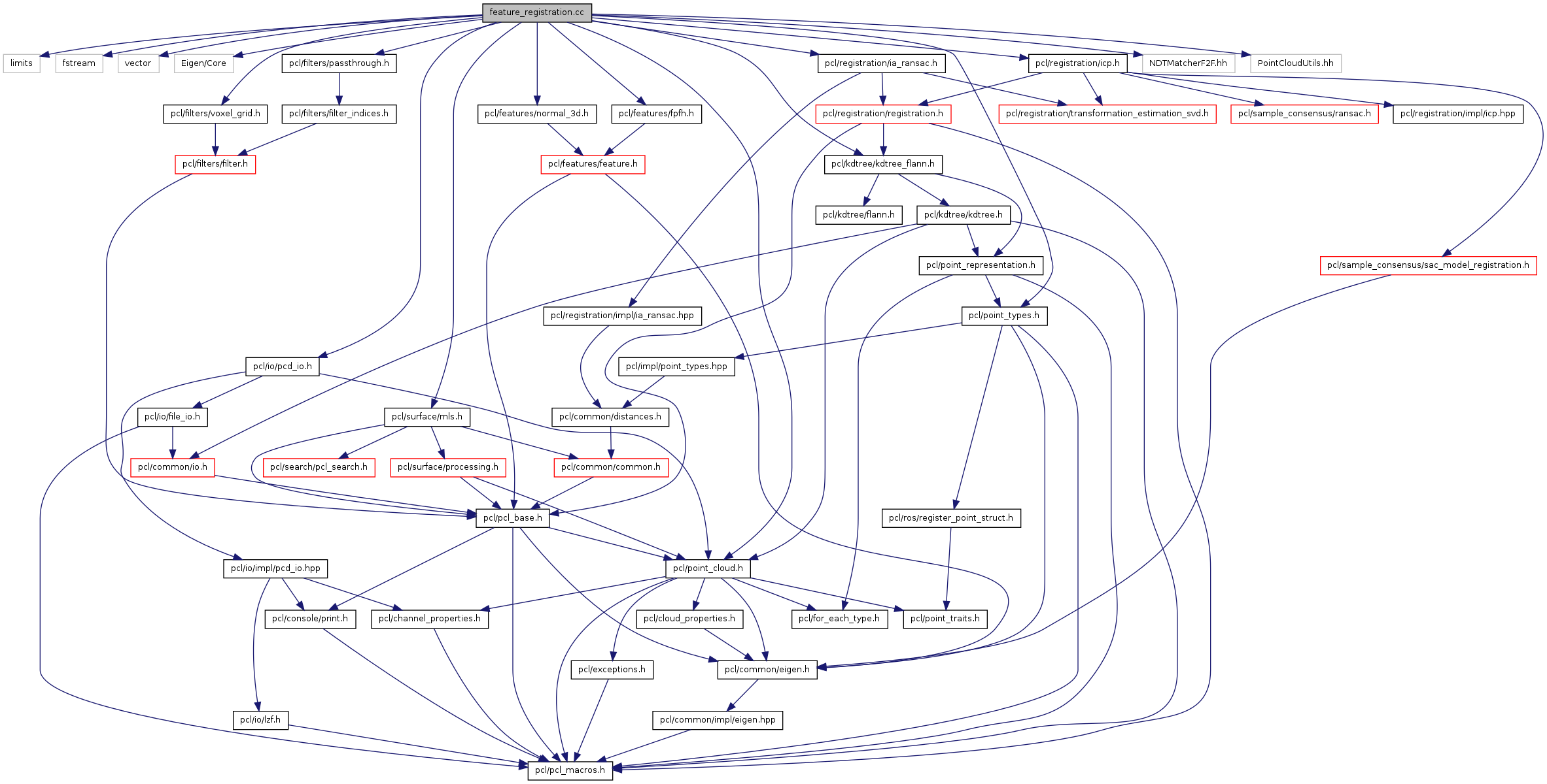 #include <limits>#include <fstream>#include <vector>#include <Eigen/Core>#include "pcl/point_types.h"#include "pcl/point_cloud.h"#include "pcl/io/pcd_io.h"#include "pcl/kdtree/kdtree_flann.h"#include "pcl/filters/passthrough.h"#include "pcl/filters/voxel_grid.h"#include "pcl/features/normal_3d.h"#include "pcl/features/fpfh.h"#include "pcl/registration/ia_ransac.h"#include "pcl/registration/icp.h"#include <pcl/surface/mls.h>#include <NDTMatcherF2F.hh>#include <PointCloudUtils.hh>