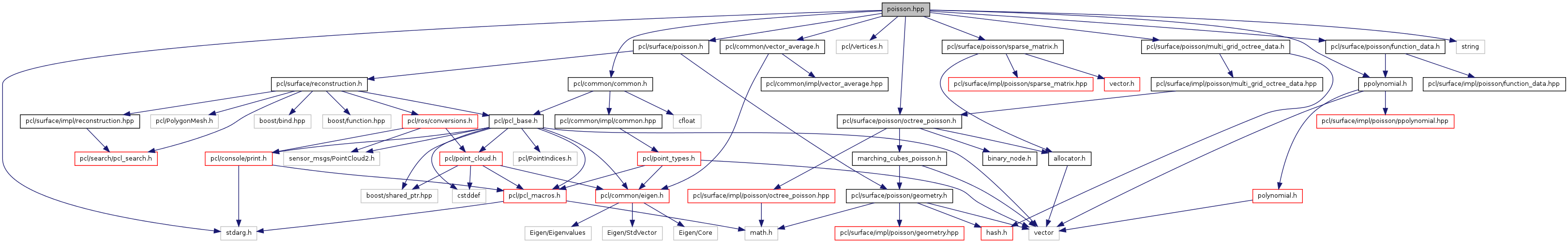 #include <pcl/surface/poisson.h>#include <pcl/common/common.h>#include <pcl/common/vector_average.h>#include <pcl/Vertices.h>#include <pcl/surface/poisson/octree_poisson.h>#include <pcl/surface/poisson/sparse_matrix.h>#include <pcl/surface/poisson/function_data.h>#include <pcl/surface/poisson/ppolynomial.h>#include <pcl/surface/poisson/multi_grid_octree_data.h>#include <stdarg.h>#include <string>