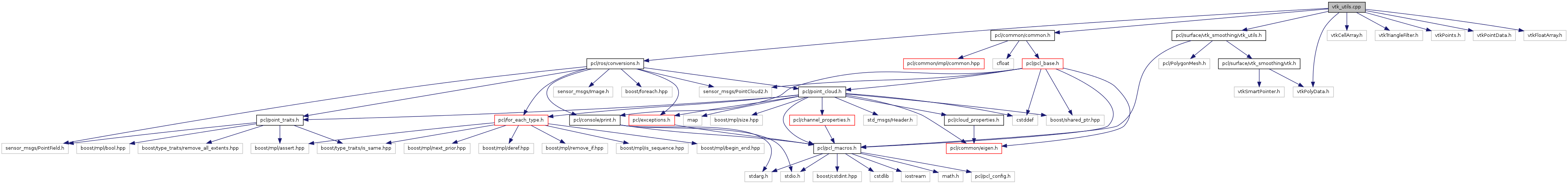 #include <pcl/surface/vtk_smoothing/vtk_utils.h>#include <pcl/ros/conversions.h>#include <pcl/common/common.h>#include <vtkCellArray.h>#include <vtkTriangleFilter.h>#include <vtkPoints.h>#include <vtkPolyData.h>#include <vtkPointData.h>#include <vtkFloatArray.h>
