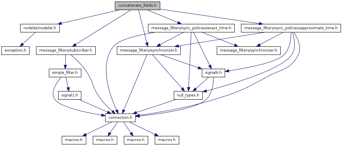 #include <nodelet/nodelet.h>#include <message_filters/subscriber.h>#include <message_filters/synchronizer.h>#include <message_filters/sync_policies/exact_time.h>#include <message_filters/sync_policies/approximate_time.h>