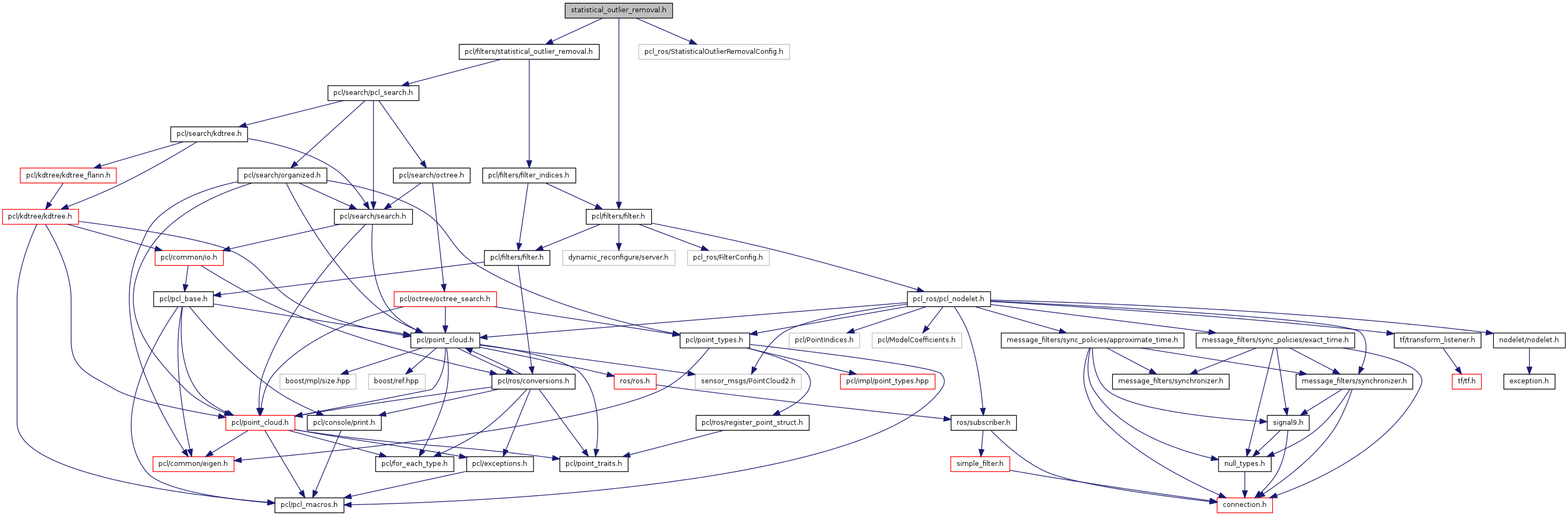 #include <pcl/filters/statistical_outlier_removal.h>#include "pcl_ros/filters/filter.h"#include "pcl_ros/StatisticalOutlierRemovalConfig.h"