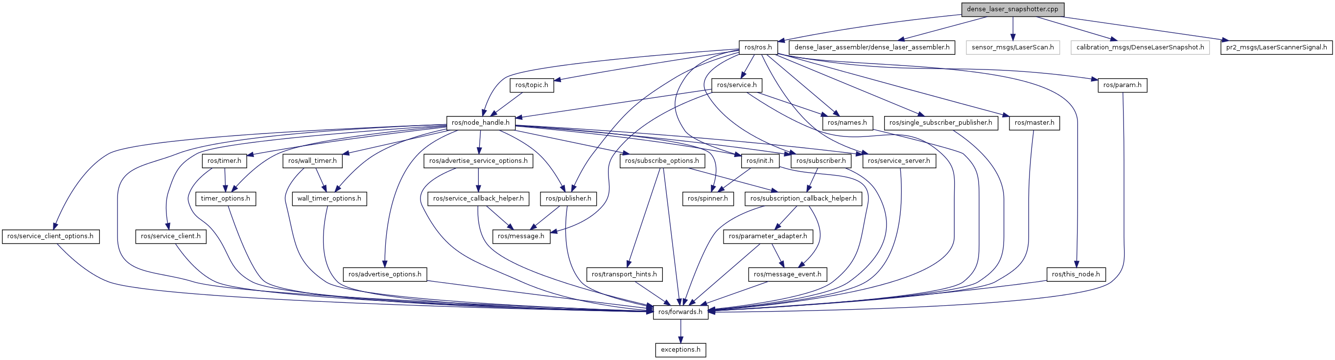 #include "ros/ros.h"#include <dense_laser_assembler/dense_laser_assembler.h>#include "sensor_msgs/LaserScan.h"#include "calibration_msgs/DenseLaserSnapshot.h"#include "pr2_msgs/LaserScannerSignal.h"
