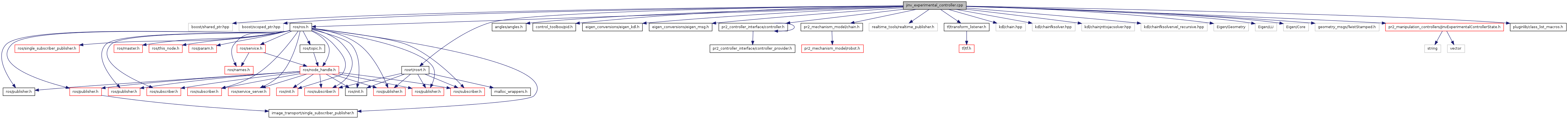 #include <boost/shared_ptr.hpp>#include <boost/scoped_ptr.hpp>#include <ros/ros.h>#include <rosrt/rosrt.h>#include <angles/angles.h>#include <control_toolbox/pid.h>#include <eigen_conversions/eigen_kdl.h>#include <eigen_conversions/eigen_msg.h>#include <pr2_controller_interface/controller.h>#include <pr2_mechanism_model/chain.h>#include <realtime_tools/realtime_publisher.h>#include <tf/transform_listener.h>#include <kdl/chain.hpp>#include <kdl/chainfksolver.hpp>#include <kdl/chainjnttojacsolver.hpp>#include <kdl/chainfksolvervel_recursive.hpp>#include <Eigen/Geometry>#include <Eigen/LU>#include <Eigen/Core>#include <geometry_msgs/TwistStamped.h>#include <pr2_manipulation_controllers/JinvExperimentalControllerState.h>#include <pluginlib/class_list_macros.h>