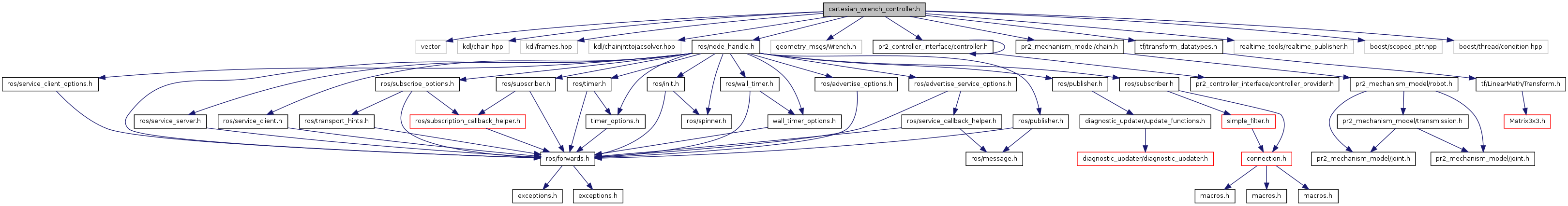 #include <vector>#include <kdl/chain.hpp>#include <kdl/frames.hpp>#include <kdl/chainjnttojacsolver.hpp>#include <ros/node_handle.h>#include <geometry_msgs/Wrench.h>#include <pr2_controller_interface/controller.h>#include <pr2_mechanism_model/chain.h>#include <tf/transform_datatypes.h>#include <realtime_tools/realtime_publisher.h>#include <boost/scoped_ptr.hpp>#include <boost/thread/condition.hpp>