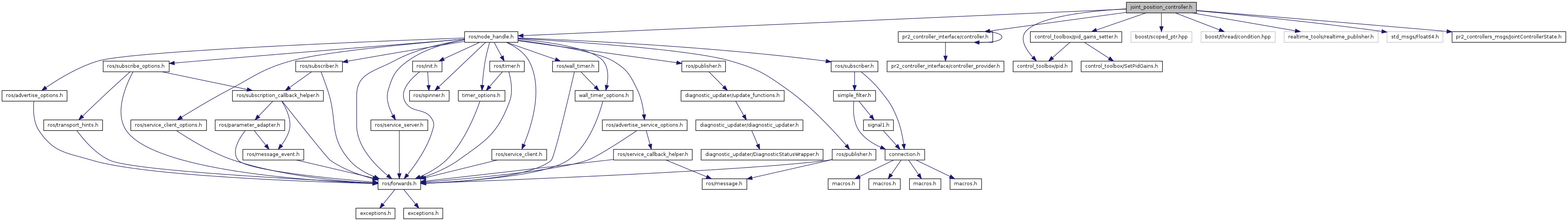 #include <ros/node_handle.h>#include <pr2_controller_interface/controller.h>#include <control_toolbox/pid.h>#include "control_toolbox/pid_gains_setter.h"#include <boost/scoped_ptr.hpp>#include <boost/thread/condition.hpp>#include <realtime_tools/realtime_publisher.h>#include <std_msgs/Float64.h>#include <pr2_controllers_msgs/JointControllerState.h>