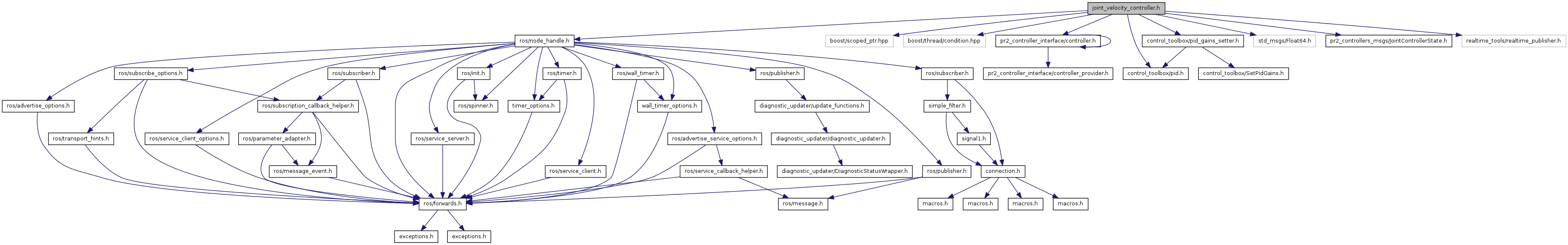 #include <ros/node_handle.h>#include <boost/scoped_ptr.hpp>#include <boost/thread/condition.hpp>#include "pr2_controller_interface/controller.h"#include "control_toolbox/pid.h"#include "control_toolbox/pid_gains_setter.h"#include <std_msgs/Float64.h>#include <pr2_controllers_msgs/JointControllerState.h>#include <realtime_tools/realtime_publisher.h>