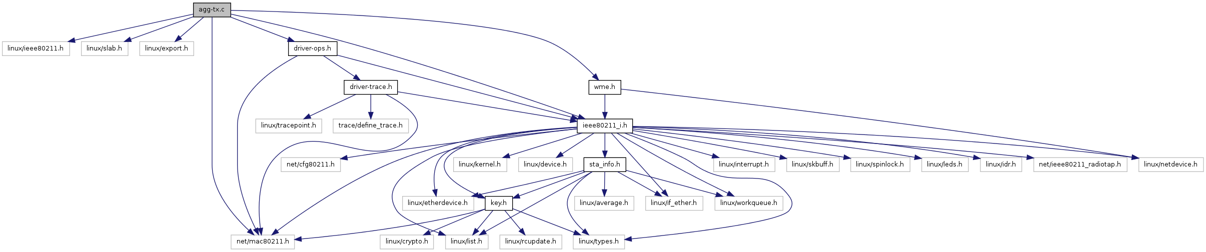 Aggregation on the TX side requires setting the hardware flag IEEE80211_HW_AMPDU_AGGREGATION. The driver will then be handed packets with a flag indicating A-MPDU aggregation. The driver or device is responsible for actually aggregating the frames, as well as deciding how many and which to aggregate.