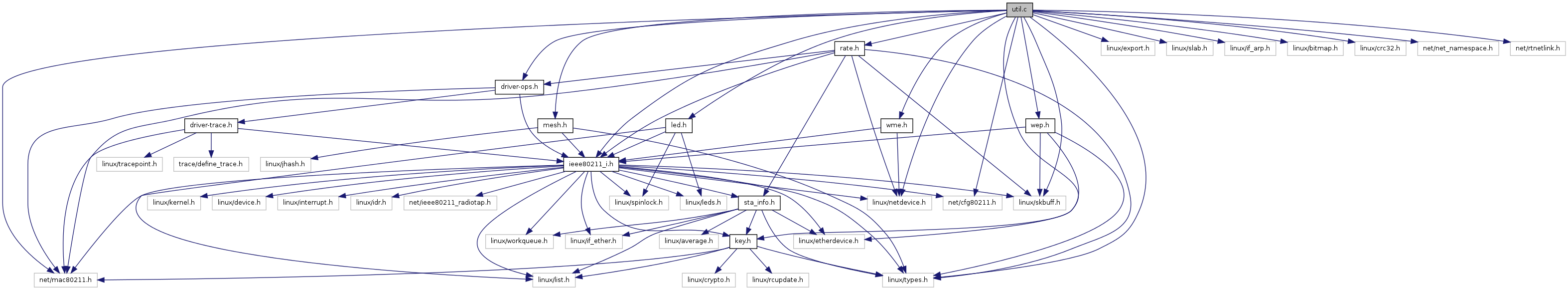 #include <net/mac80211.h>#include <linux/netdevice.h>#include <linux/export.h>#include <linux/types.h>#include <linux/slab.h>#include <linux/skbuff.h>#include <linux/etherdevice.h>#include <linux/if_arp.h>#include <linux/bitmap.h>#include <linux/crc32.h>#include <net/net_namespace.h>#include <net/cfg80211.h>#include <net/rtnetlink.h>#include "ieee80211_i.h"#include "driver-ops.h"#include "rate.h"#include "mesh.h"#include "wme.h"#include "led.h"#include "wep.h"
