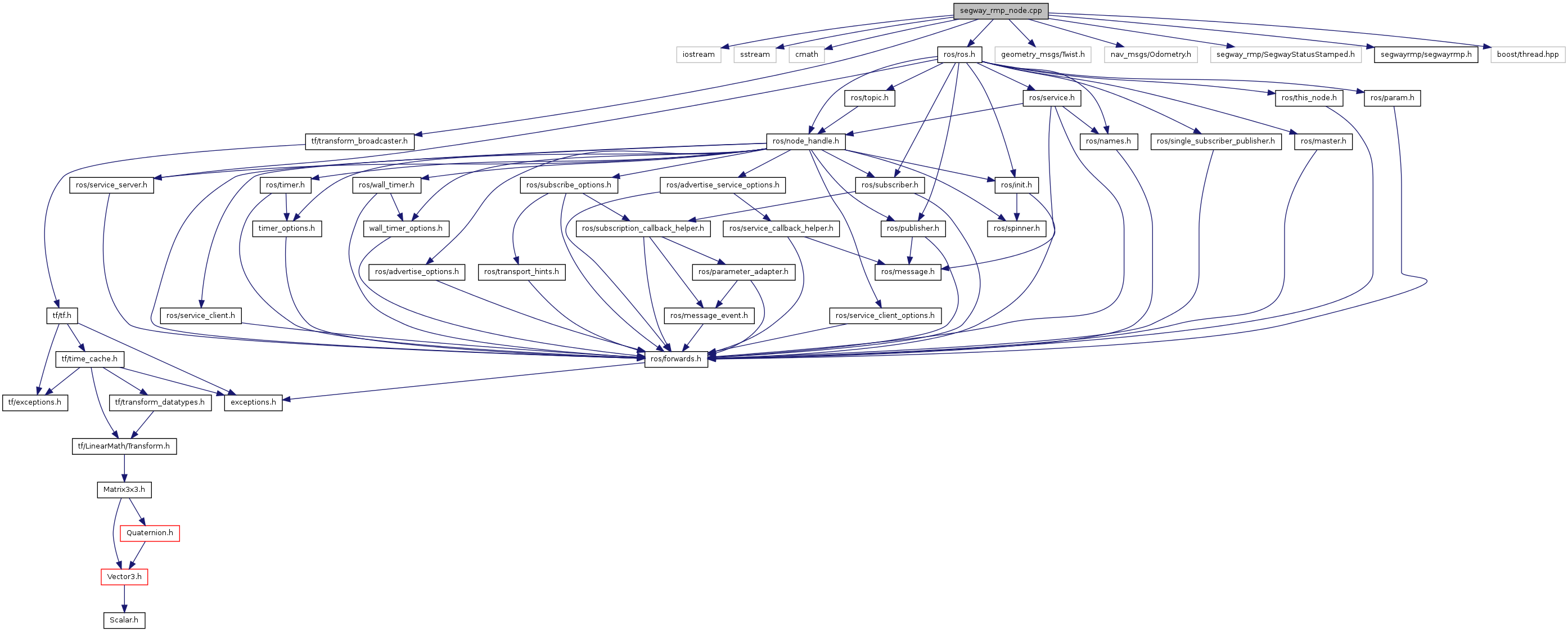 #include <iostream>#include <sstream>#include <cmath>#include "ros/ros.h"#include <tf/transform_broadcaster.h>#include "geometry_msgs/Twist.h"#include "nav_msgs/Odometry.h"#include "segway_rmp/SegwayStatusStamped.h"#include "segwayrmp/segwayrmp.h"#include <boost/thread.hpp>