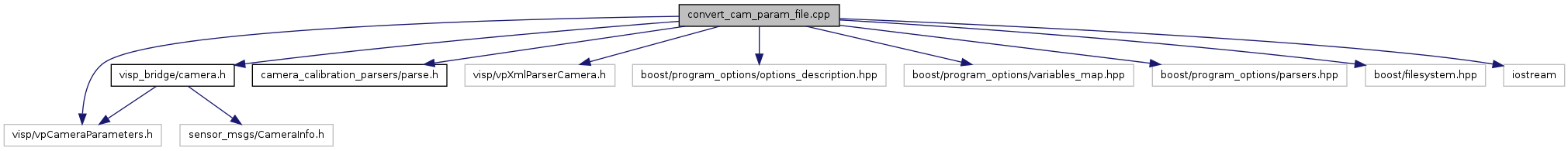 command line tool to convert a ViSP camera parameter file to a INI/YAML file compatible with ROS drivers More...