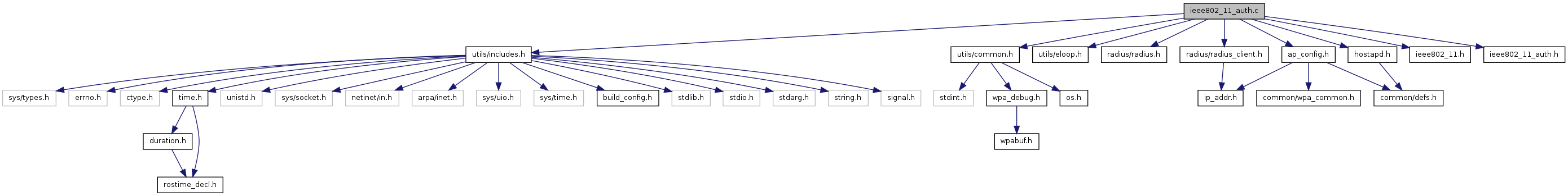 #include "utils/includes.h"#include "utils/common.h"#include "utils/eloop.h"#include "radius/radius.h"#include "radius/radius_client.h"#include "hostapd.h"#include "ap_config.h"#include "ieee802_11.h"#include "ieee802_11_auth.h"