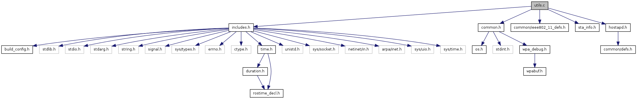 Include dependency graph for utils.c: