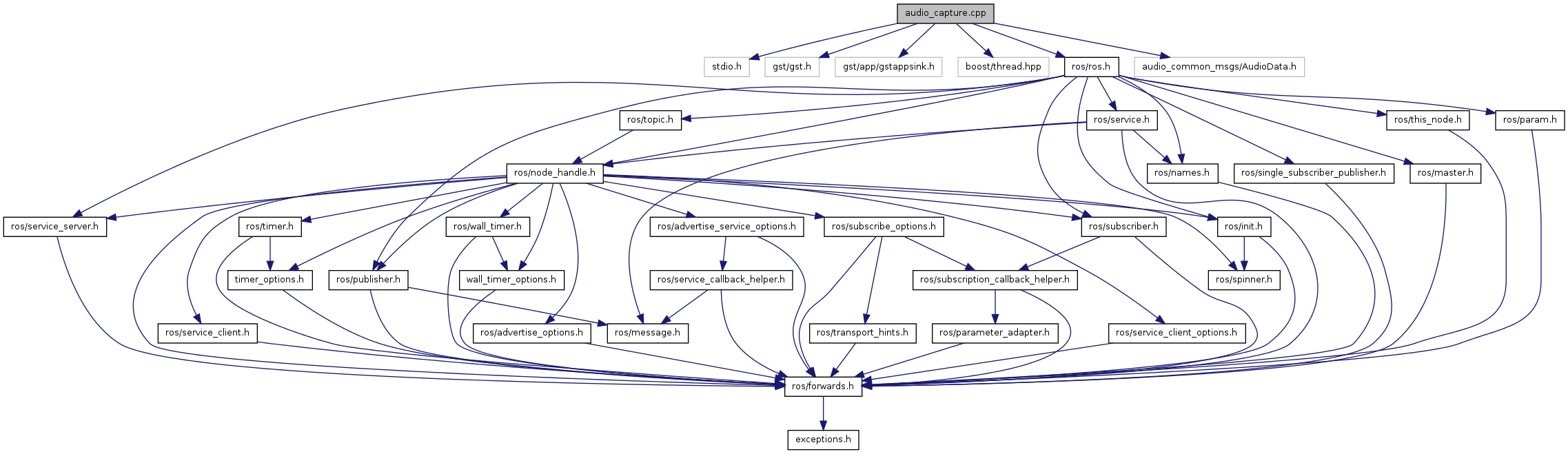 #include <stdio.h>#include <gst/gst.h>#include <gst/app/gstappsink.h>#include <boost/thread.hpp>#include <ros/ros.h>#include "audio_common_msgs/AudioData.h"