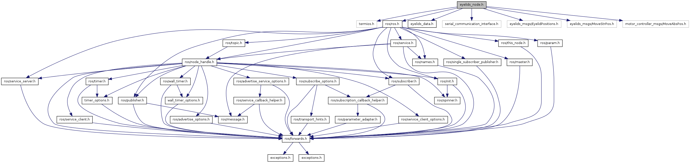 #include <termios.h>#include <ros/ros.h>#include "eyelids_data.h"#include "serial_communication_interface.h"#include <eyelids_msgs/EyelidPositions.h>#include <eyelids_msgs/MoveStrPos.h>#include <motor_controller_msgs/MoveAbsPos.h>