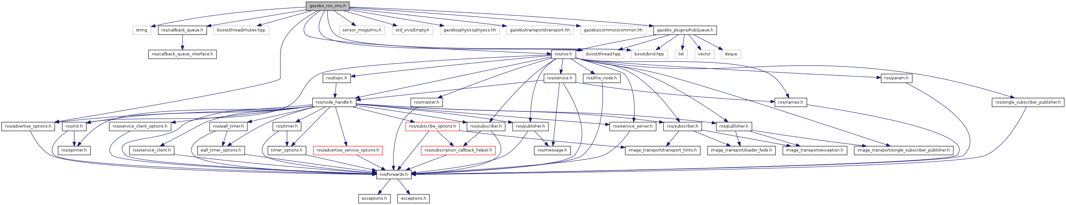 #include <string>#include <boost/thread.hpp>#include <boost/thread/mutex.hpp>#include <boost/bind.hpp>#include <ros/ros.h>#include <ros/callback_queue.h>#include <ros/advertise_options.h>#include <sensor_msgs/Imu.h>#include <std_srvs/Empty.h>#include <gazebo/physics/physics.hh>#include <gazebo/transport/transport.hh>#include <gazebo/common/common.hh>#include <gazebo_plugins/PubQueue.h>