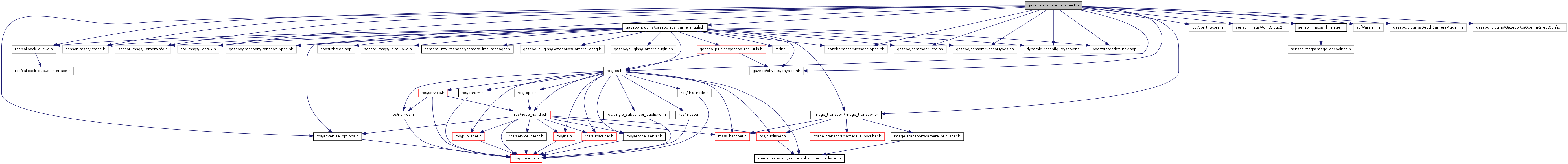 #include <ros/ros.h>#include <ros/callback_queue.h>#include <ros/advertise_options.h>#include <pcl/point_types.h>#include <sensor_msgs/PointCloud2.h>#include <sensor_msgs/Image.h>#include <sensor_msgs/CameraInfo.h>#include <sensor_msgs/fill_image.h>#include <std_msgs/Float64.h>#include <image_transport/image_transport.h>#include <sdf/Param.hh>#include <gazebo/physics/physics.hh>#include <gazebo/transport/TransportTypes.hh>#include <gazebo/msgs/MessageTypes.hh>#include <gazebo/common/Time.hh>#include <gazebo/sensors/SensorTypes.hh>#include <gazebo/plugins/DepthCameraPlugin.hh>#include <gazebo_plugins/GazeboRosOpenniKinectConfig.h>#include <dynamic_reconfigure/server.h>#include <boost/thread/mutex.hpp>#include <gazebo_plugins/gazebo_ros_camera_utils.h>