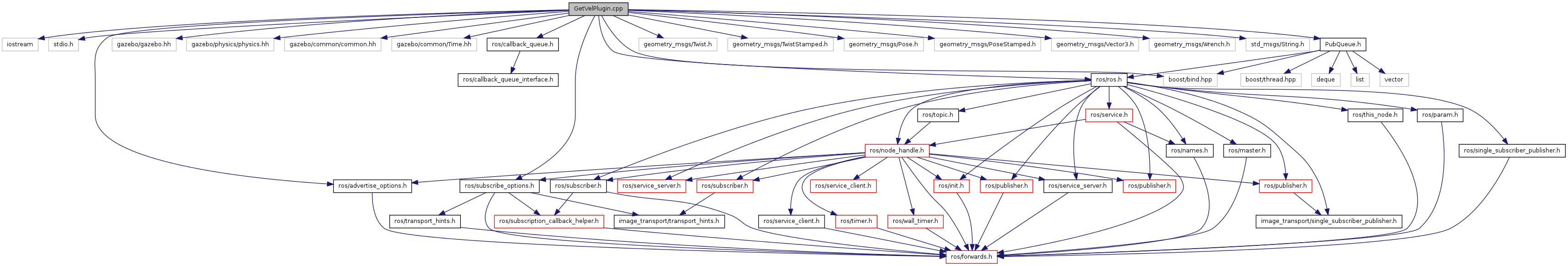 #include <iostream>#include <stdio.h>#include <boost/bind.hpp>#include <gazebo/gazebo.hh>#include <gazebo/physics/physics.hh>#include <gazebo/common/common.hh>#include <gazebo/common/Time.hh>#include <ros/ros.h>#include <ros/callback_queue.h>#include <ros/advertise_options.h>#include <ros/subscribe_options.h>#include <geometry_msgs/Twist.h>#include <geometry_msgs/TwistStamped.h>#include <geometry_msgs/Pose.h>#include <geometry_msgs/PoseStamped.h>#include <geometry_msgs/Vector3.h>#include <geometry_msgs/Wrench.h>#include <std_msgs/String.h>#include "PubQueue.h"