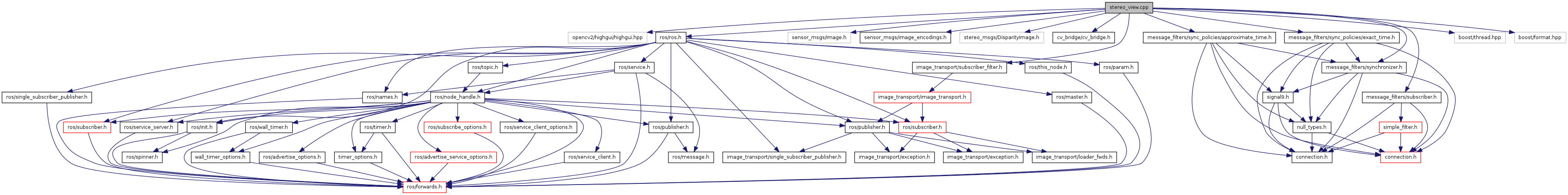 #include <opencv2/highgui/highgui.hpp>#include <ros/ros.h>#include <sensor_msgs/Image.h>#include <sensor_msgs/image_encodings.h>#include <stereo_msgs/DisparityImage.h>#include <cv_bridge/cv_bridge.h>#include <message_filters/subscriber.h>#include <message_filters/synchronizer.h>#include <message_filters/sync_policies/exact_time.h>#include <message_filters/sync_policies/approximate_time.h>#include <image_transport/subscriber_filter.h>#include <boost/thread.hpp>#include <boost/format.hpp>