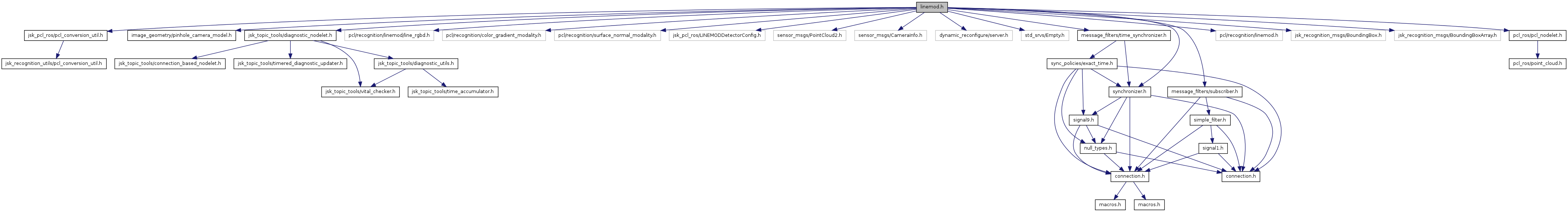 #include "jsk_pcl_ros/pcl_conversion_util.h"#include <image_geometry/pinhole_camera_model.h>#include <jsk_topic_tools/diagnostic_nodelet.h>#include <pcl/recognition/linemod/line_rgbd.h>#include <pcl/recognition/color_gradient_modality.h>#include <pcl/recognition/surface_normal_modality.h>#include <jsk_pcl_ros/LINEMODDetectorConfig.h>#include <sensor_msgs/PointCloud2.h>#include <sensor_msgs/CameraInfo.h>#include <dynamic_reconfigure/server.h>#include <std_srvs/Empty.h>#include <message_filters/subscriber.h>#include <message_filters/time_synchronizer.h>#include <message_filters/synchronizer.h>#include <pcl/recognition/linemod.h>#include <jsk_recognition_msgs/BoundingBox.h>#include <jsk_recognition_msgs/BoundingBoxArray.h>#include <pcl_ros/pcl_nodelet.h>