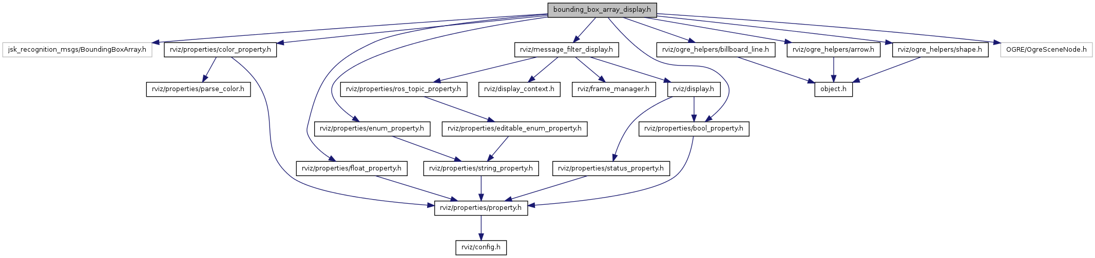 #include <jsk_recognition_msgs/BoundingBoxArray.h>#include <rviz/properties/color_property.h>#include <rviz/properties/bool_property.h>#include <rviz/properties/float_property.h>#include <rviz/properties/enum_property.h>#include <rviz/message_filter_display.h>#include <rviz/ogre_helpers/shape.h>#include <rviz/ogre_helpers/billboard_line.h>#include <rviz/ogre_helpers/arrow.h>#include <OGRE/OgreSceneNode.h>