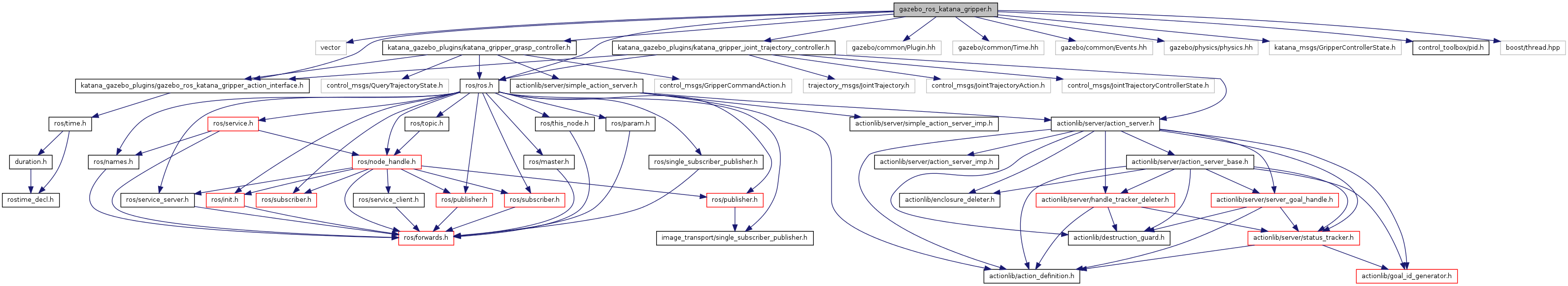 #include <vector>#include <katana_gazebo_plugins/gazebo_ros_katana_gripper_action_interface.h>#include <katana_gazebo_plugins/katana_gripper_grasp_controller.h>#include <katana_gazebo_plugins/katana_gripper_joint_trajectory_controller.h>#include <gazebo/common/Plugin.hh>#include <gazebo/common/Time.hh>#include <gazebo/common/Events.hh>#include <gazebo/physics/physics.hh>#include <katana_msgs/GripperControllerState.h>#include <control_toolbox/pid.h>#include <ros/ros.h>#include <boost/thread.hpp>