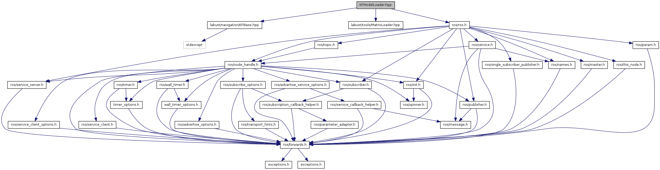 #include <labust/navigation/KFBase.hpp>#include <labust/tools/MatrixLoader.hpp>#include <ros/ros.h>