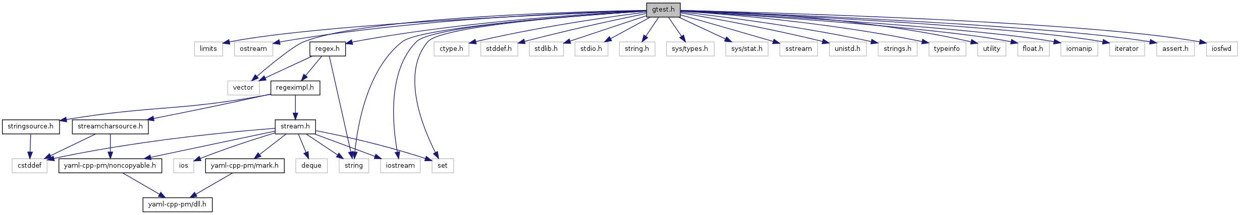 Include dependency graph for gtest.h: