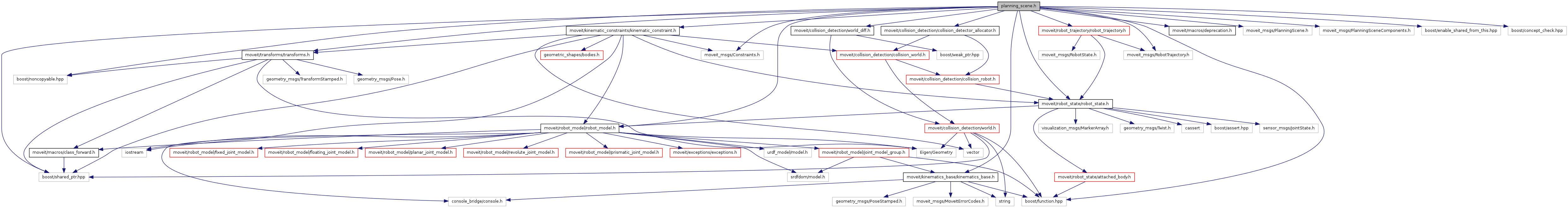 #include <moveit/robot_model/robot_model.h>#include <moveit/robot_state/robot_state.h>#include <moveit/transforms/transforms.h>#include <moveit/collision_detection/collision_detector_allocator.h>#include <moveit/collision_detection/world_diff.h>#include <moveit/kinematic_constraints/kinematic_constraint.h>#include <moveit/kinematics_base/kinematics_base.h>#include <moveit/robot_trajectory/robot_trajectory.h>#include <moveit/macros/deprecation.h>#include <moveit_msgs/PlanningScene.h>#include <moveit_msgs/RobotTrajectory.h>#include <moveit_msgs/Constraints.h>#include <moveit_msgs/PlanningSceneComponents.h>#include <boost/enable_shared_from_this.hpp>#include <boost/noncopyable.hpp>#include <boost/shared_ptr.hpp>#include <boost/function.hpp>#include <boost/concept_check.hpp>