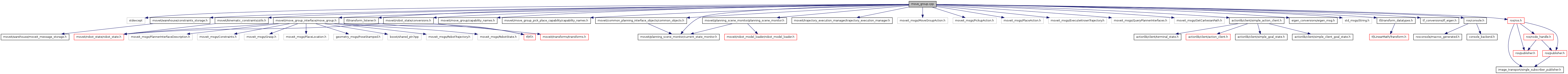 #include <stdexcept>#include <moveit/warehouse/constraints_storage.h>#include <moveit/kinematic_constraints/utils.h>#include <moveit/move_group/capability_names.h>#include <moveit/move_group_pick_place_capability/capability_names.h>#include <moveit/move_group_interface/move_group.h>#include <moveit/planning_scene_monitor/current_state_monitor.h>#include <moveit/planning_scene_monitor/planning_scene_monitor.h>#include <moveit/trajectory_execution_manager/trajectory_execution_manager.h>#include <moveit/common_planning_interface_objects/common_objects.h>#include <moveit/robot_state/conversions.h>#include <moveit_msgs/MoveGroupAction.h>#include <moveit_msgs/PickupAction.h>#include <moveit_msgs/PlaceAction.h>#include <moveit_msgs/ExecuteKnownTrajectory.h>#include <moveit_msgs/QueryPlannerInterfaces.h>#include <moveit_msgs/GetCartesianPath.h>#include <actionlib/client/simple_action_client.h>#include <eigen_conversions/eigen_msg.h>#include <std_msgs/String.h>#include <tf/transform_listener.h>#include <tf/transform_datatypes.h>#include <tf_conversions/tf_eigen.h>#include <ros/console.h>#include <ros/ros.h>