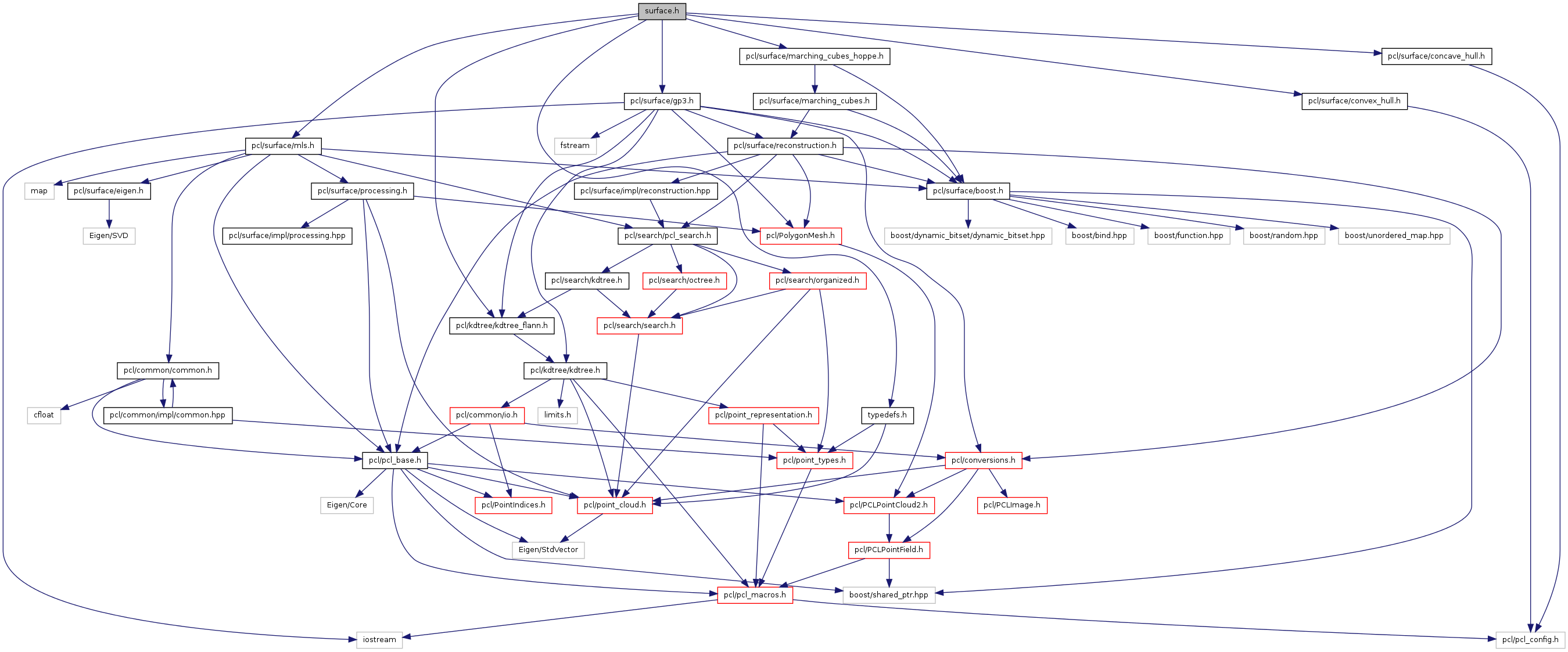 #include <pcl/kdtree/kdtree_flann.h>#include <pcl/surface/mls.h>#include <pcl/surface/convex_hull.h>#include <pcl/surface/concave_hull.h>#include <pcl/surface/gp3.h>#include <pcl/surface/marching_cubes_hoppe.h>#include "typedefs.h"