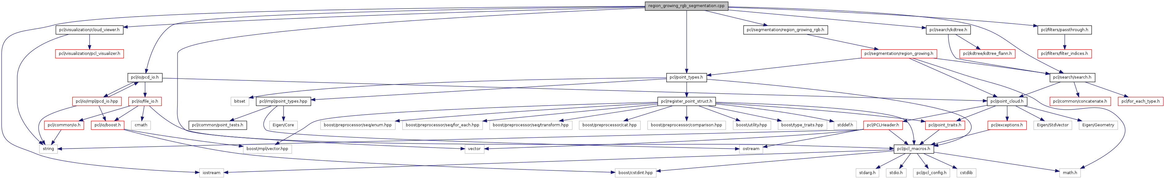 #include <iostream>#include <vector>#include <pcl/point_types.h>#include <pcl/io/pcd_io.h>#include <pcl/search/search.h>#include <pcl/search/kdtree.h>#include <pcl/visualization/cloud_viewer.h>#include <pcl/filters/passthrough.h>#include <pcl/segmentation/region_growing_rgb.h>